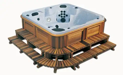 Allt i ett paket: med 2-stegs trappaket. Långside-, kortside- och hörnenheter finns för att underlätta användningen av spabadet.